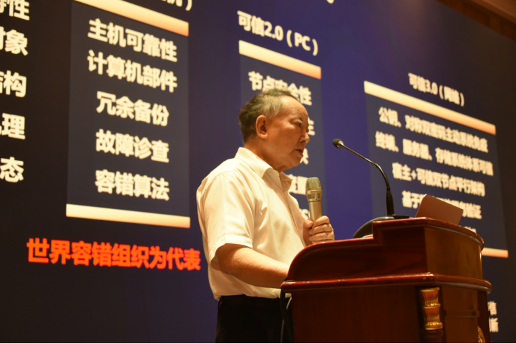 (上图为中国工程院院士沈昌祥作报告:《可信计算3.0—跨入密码智能化新时代》)